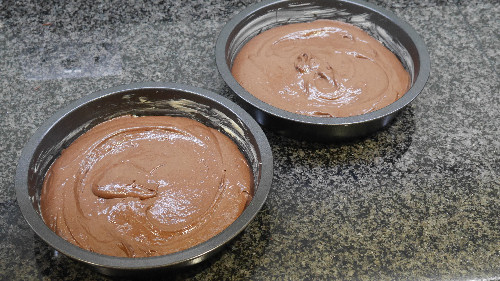 First, heat the oven up to 180ᴼ Celsius, and 170ᴼ Celsius for fan assisted ovens. Next grease and line 2 cake tins, but do not use loose bottomed tins as the mixture is so runny, it would just run out.